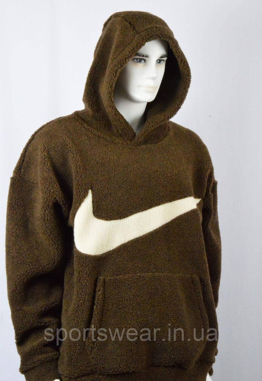 Утеплена молодіжна кофта-кенгурушка коричневого кольору на хлопчика виготовлена з якісного турецького трикотажу на міху. Всезезонна Осіння-Зимова Толстовка чоловіча з лого Найк українського виробництва, тканина кофти - виробництво Туреччина.